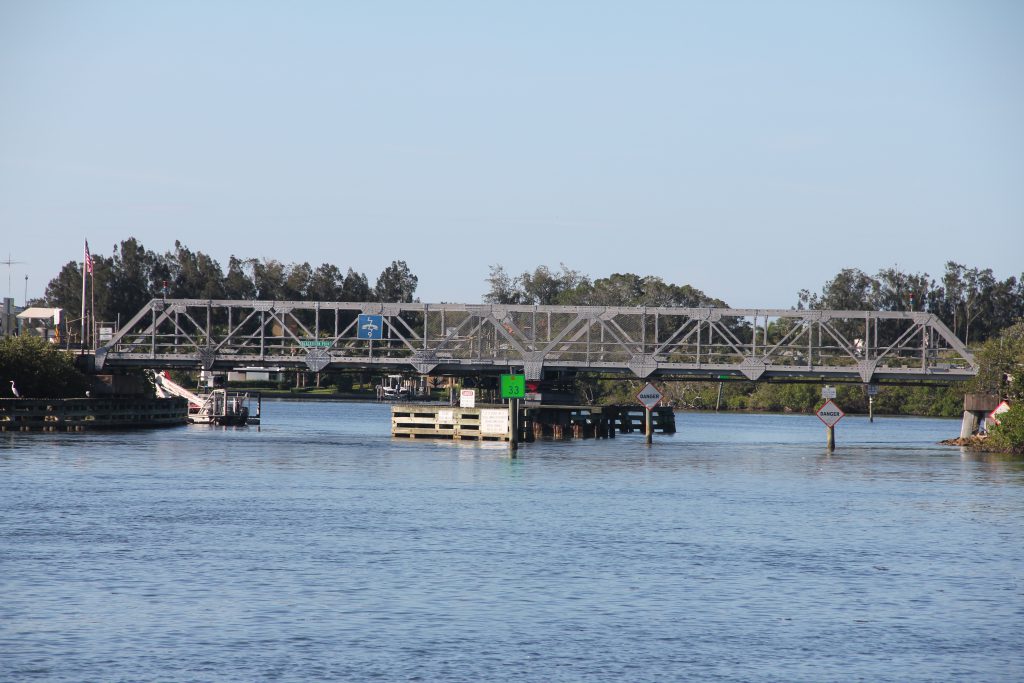 Next up was Albee Road Bridge. This one was a challenge because it is only 12 feet high at the center when it is closed. Normally our boat has a 14 foot “air draft”, so we would need to ask for an opening.