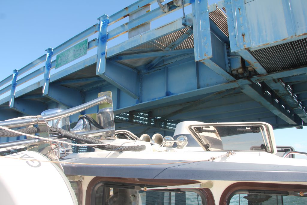 After we went under Stickney Point bridge, the next one was Blackburn Point Bridge. This one was unique from all the others. Most bridges in this area are bascule bridges. But this bridge was a swing bridge. It pivots in the center to open. A guy has to manually stop traffic and then walk to the center of the bridge to swing it open. Cool, huh?