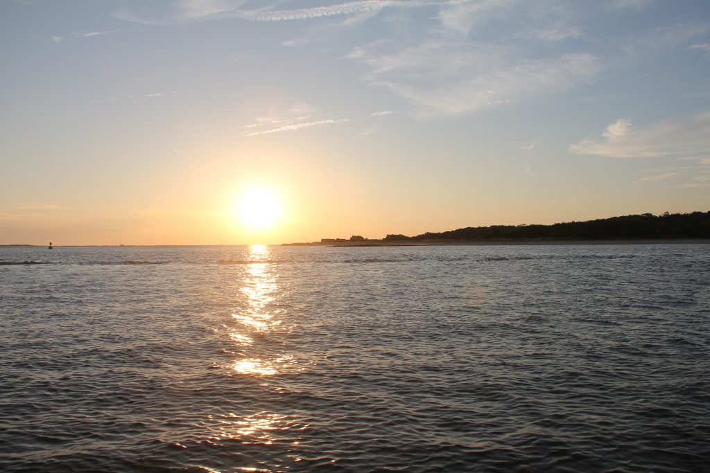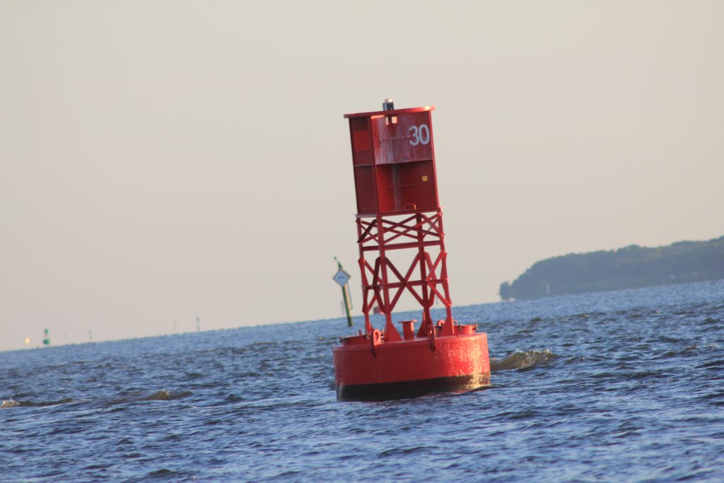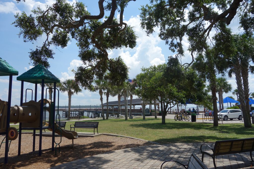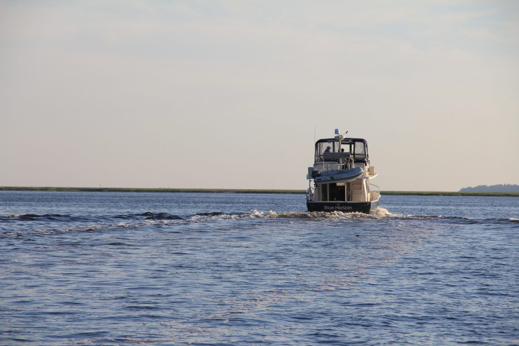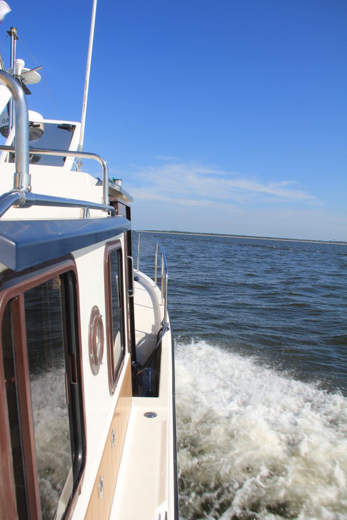 Because of the potential for running aground, in one area we had to go out to the Atlantic Ocean before rounding the edge of the low water area and continuing along the ICW. This is at St. Andrew’s Sound, and it really felt like we were headed out into the ocean.