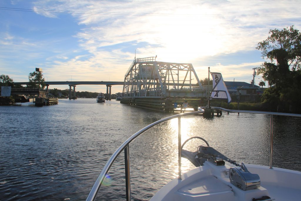 We departed early in the morning from Barefoot Marina because of concern about rocks along the ICW in this area. Our plan was to traverse this part at high tide so we could have a little extra safety margin. Since the tide was highest at 7am, we got up extra early.
