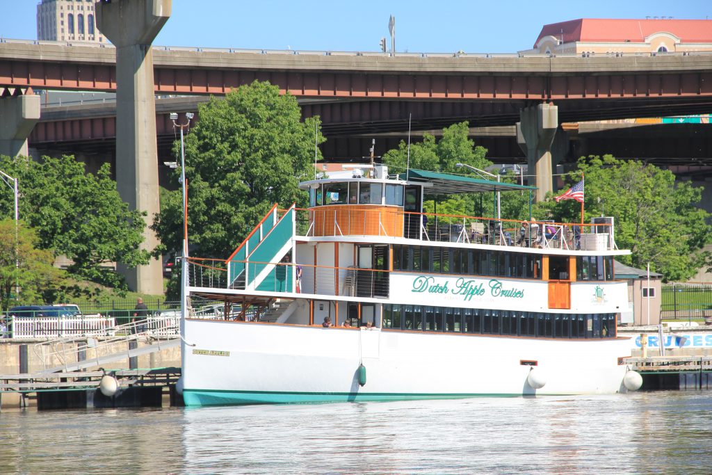 Today took us through the cities of Albany and Troy. The river is pretty narrow through here so we were very aware of large boat traffic. The first destination was the Federal lock at Troy. This would be our first lock in a while so before we headed out in the morning I had tied all our fenders around the boat in anticipation of being in close proximity of the rough lock walls.