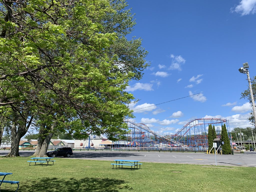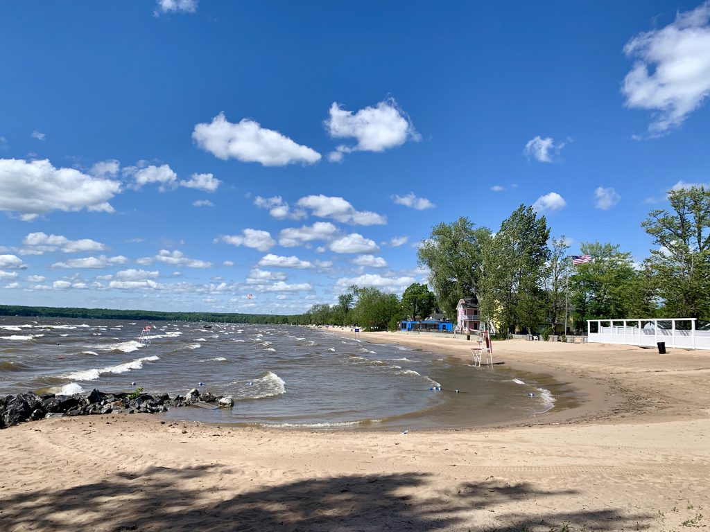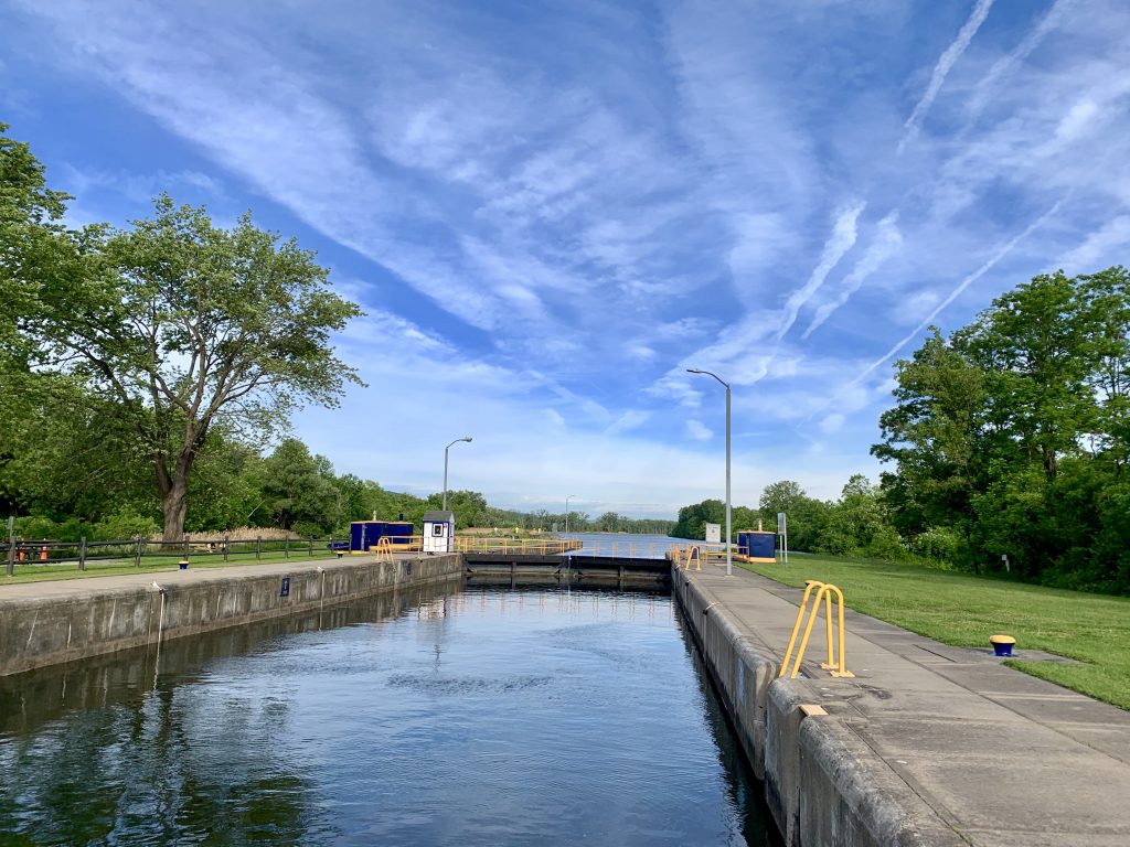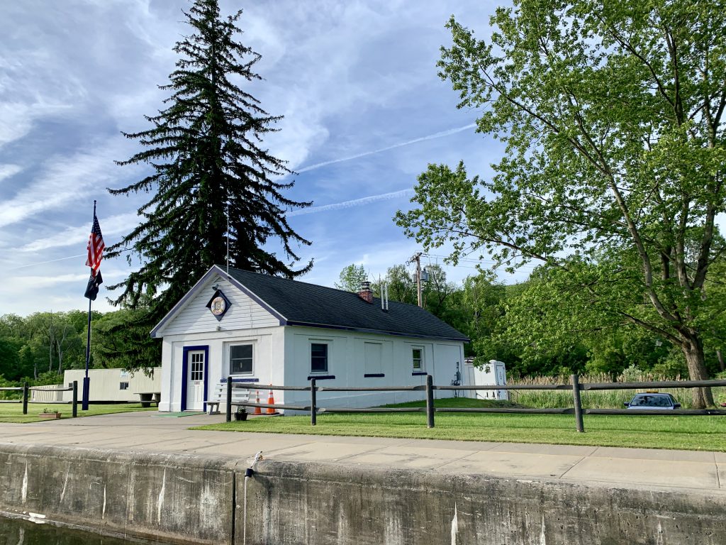We arrived at the free wall in Sylvan Beach with just enough time to tie up before it started to really rain. We stayed on the boat all afternoon as the rain continued through the night. During the night the wind picked up and we were happy to be tied to the wall. The next morning was clear, but the wind was still there and was causing some big waves on Oneida Lake, so we decided to stay put for the day.