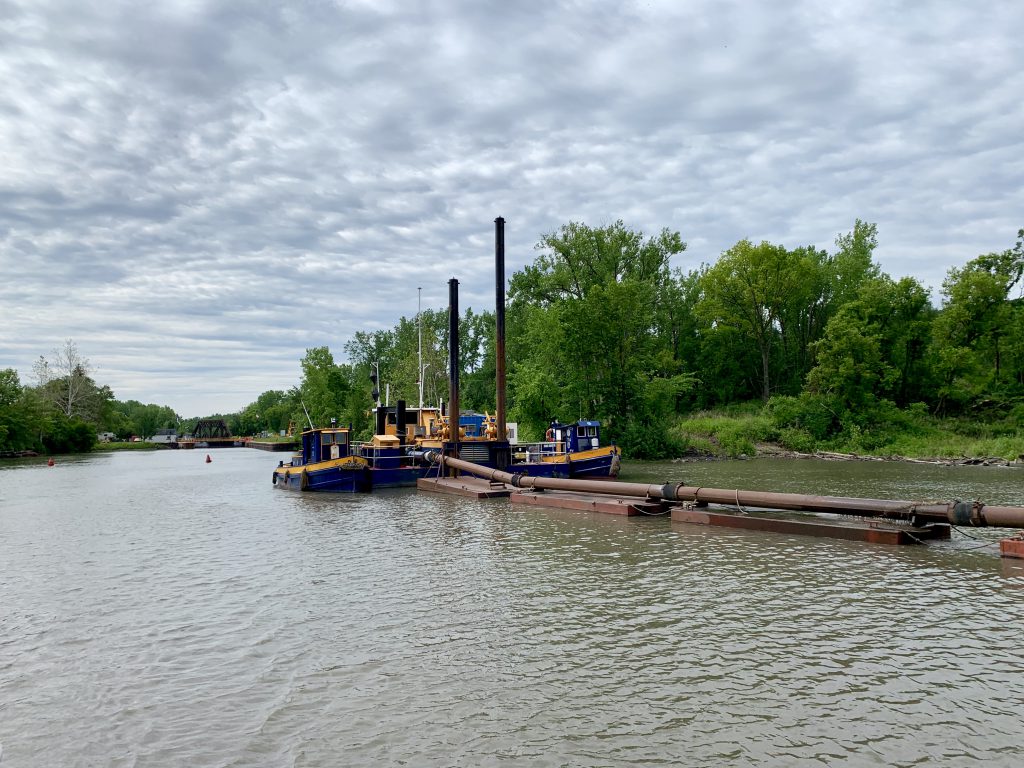 This part of the canal really started to look more like a canal, with several stretches being straight and narrow. We passed several dredging crews as well as a clean up crew removing debris from the water.