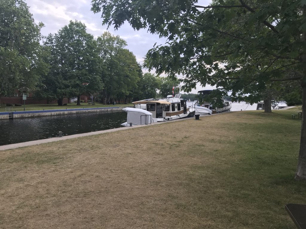 This day we returned to civilization. Bobcaygeon is a tourist destination and is the home of the Kawartha Dairy. Again we docked along the wall of the canal. This time it was in the space at the top of the lock after we rode the lock up.