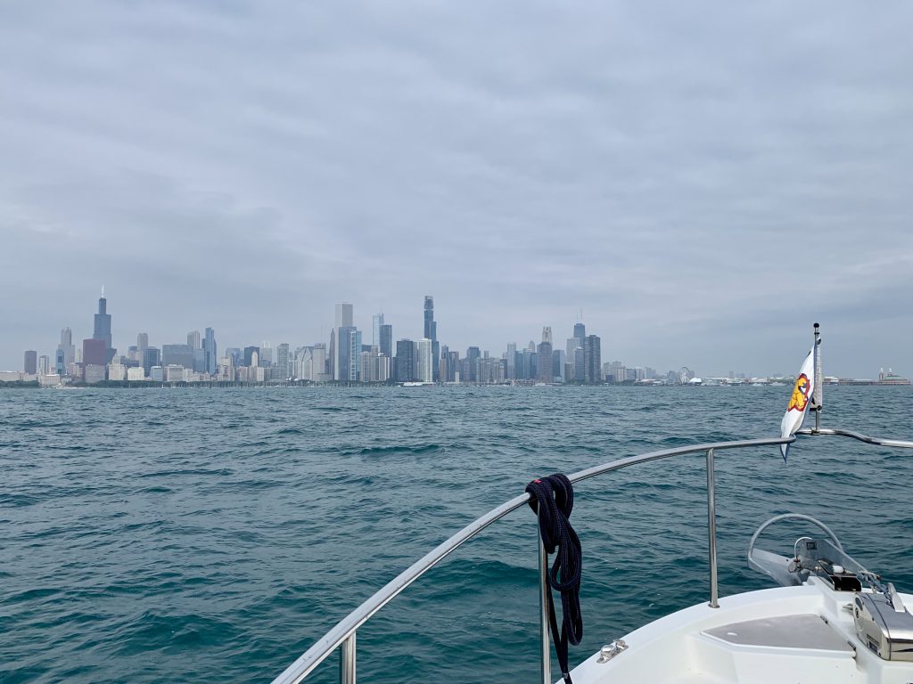 The trip from St. Joseph to Chicago took us across the bottom of Lake Michigan and as should be expected the weather forecast was not in line with what we experienced. The waves were probably 2 feet on our stern. We were uncomfortable but not in danger so we pressed on and after several hours of running at our fast cruising speed we started to see the Chicago skyline. The marina is located right at the entrance to the Chicago River so it wasn’t hard to find.
